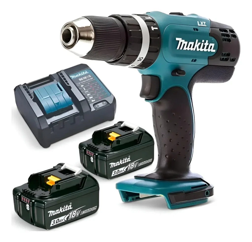 Furadeira Parafusadeira 18v Dhp453 Makita Com 2 Baterias 3ah Azul-turquesa 18v rotação máxima: 1300rpm.